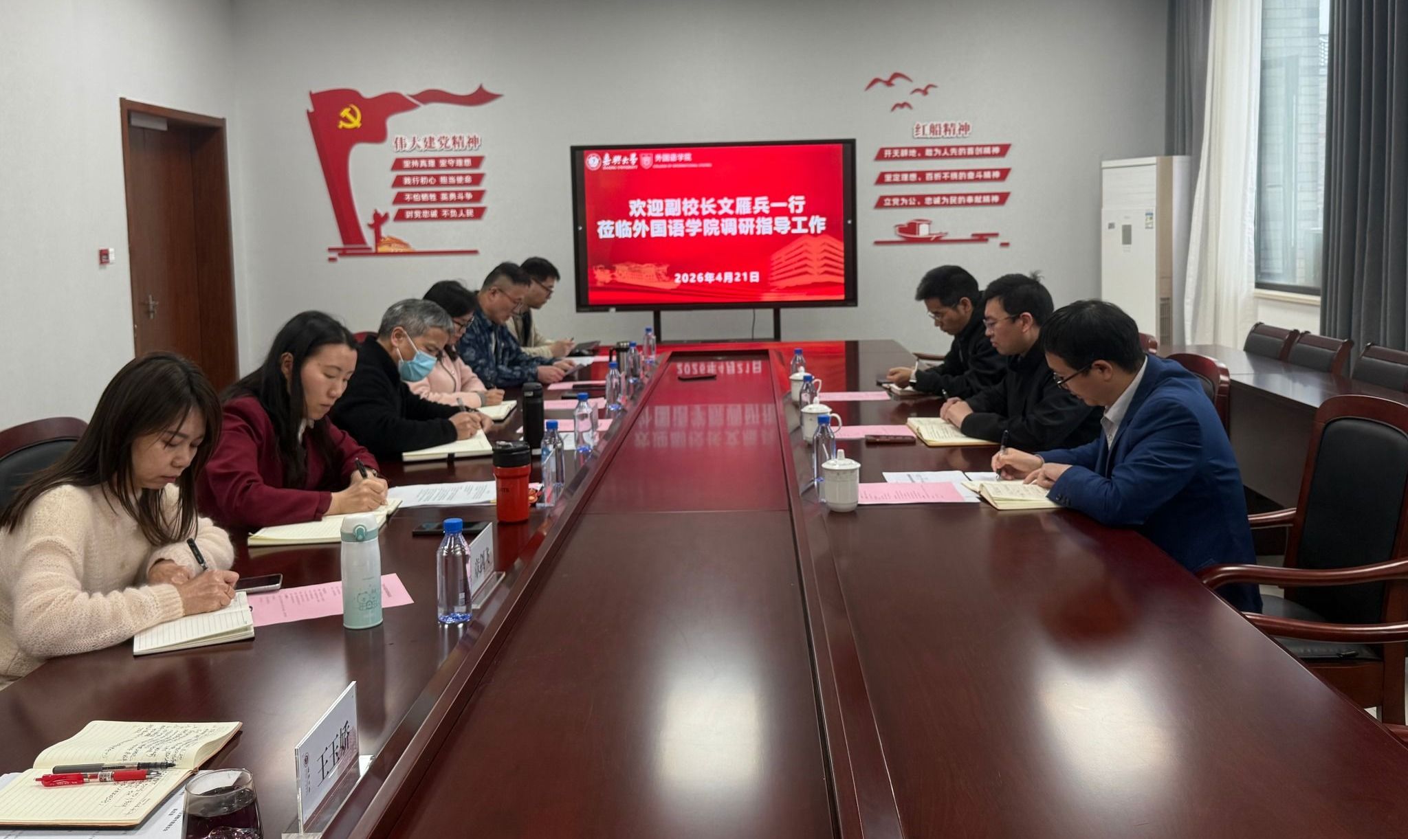 4月21日下午,副校长文雁兵一行来外国语学院调研指导工作,研究生院副院长叶宝林、人文社科处副处长李玉...