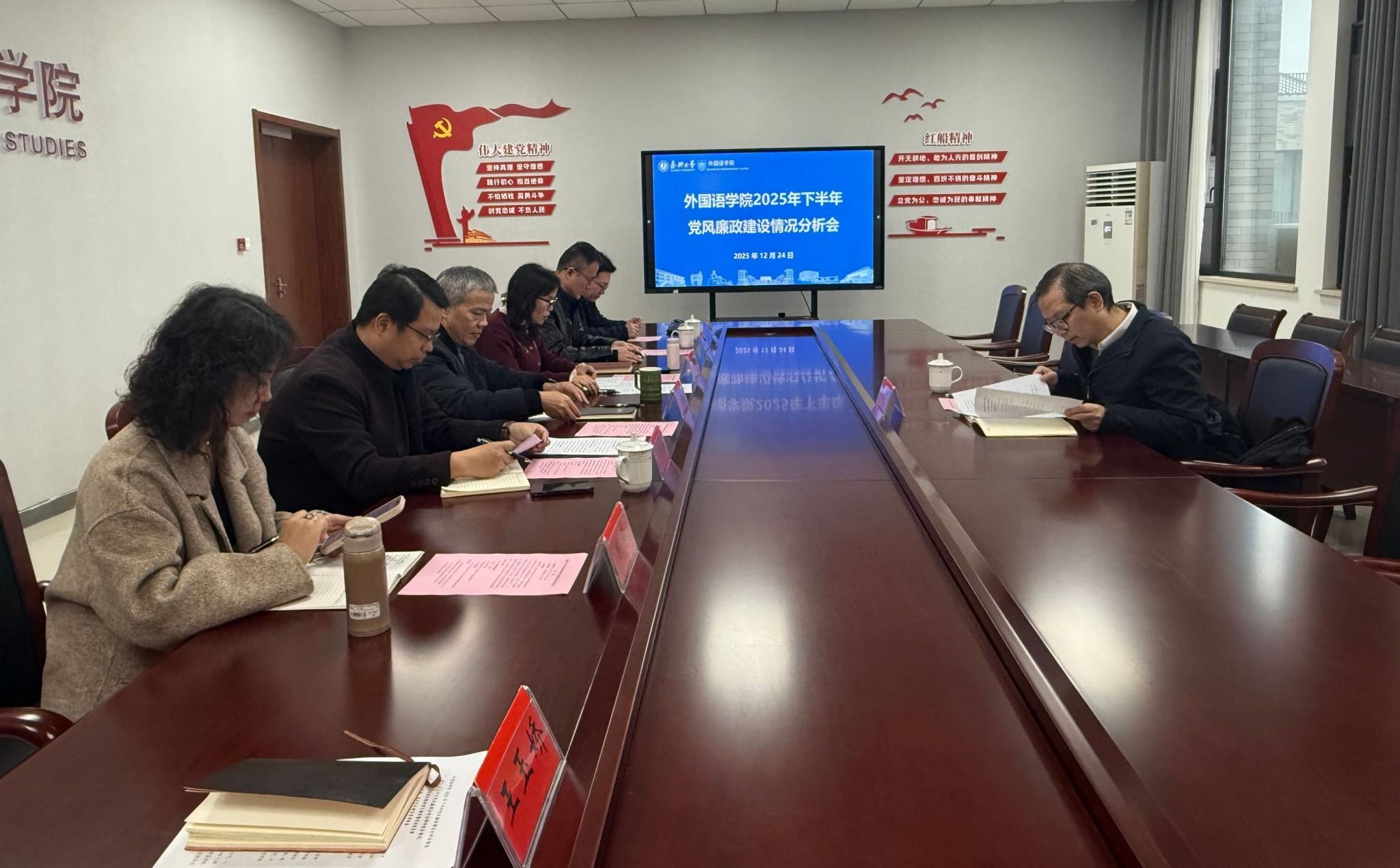 12月24日,外国语学院在兴德楼南楼516会议室召开2025年下半年党风廉政建设情况分析会。副校长周宏伟到会...