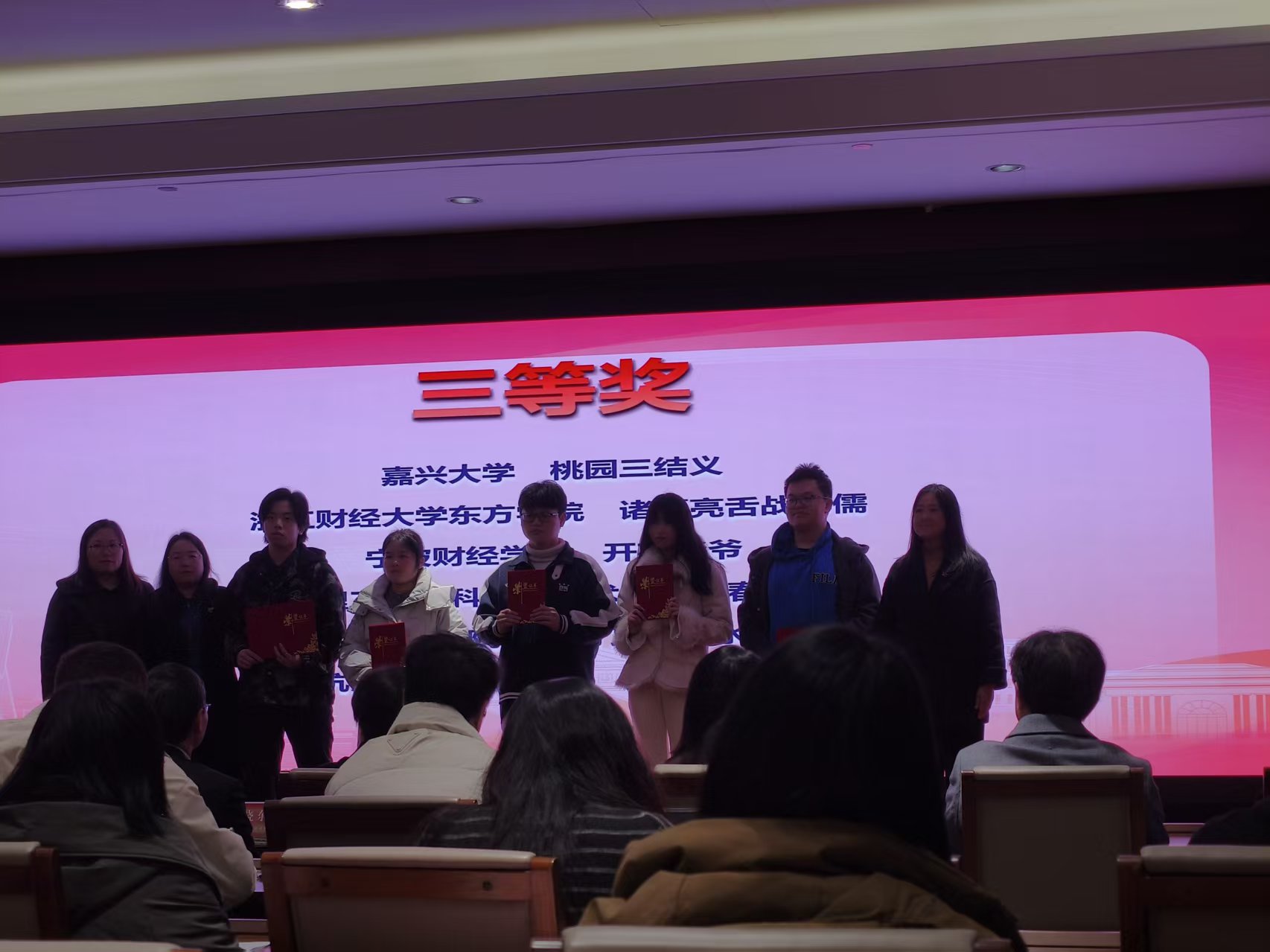 12月27日,由浙江省人民对外友好协会、日本静冈县日中友好协会主办,浙江工商大学东方语言与哲学学院、浙江外国语学院东方语言文化学院承办的“第十四届浙江省日剧PLAY大赛”圆满落幕。经过激烈角逐,我校日语专升本241班学生房奕挺、何钻、邹光鹏、朱文杰、郁正阳组成的团队,在周艳君、张冬老师的悉心指导下,凭借改编剧目《桃园三结义》荣获大赛三等奖。