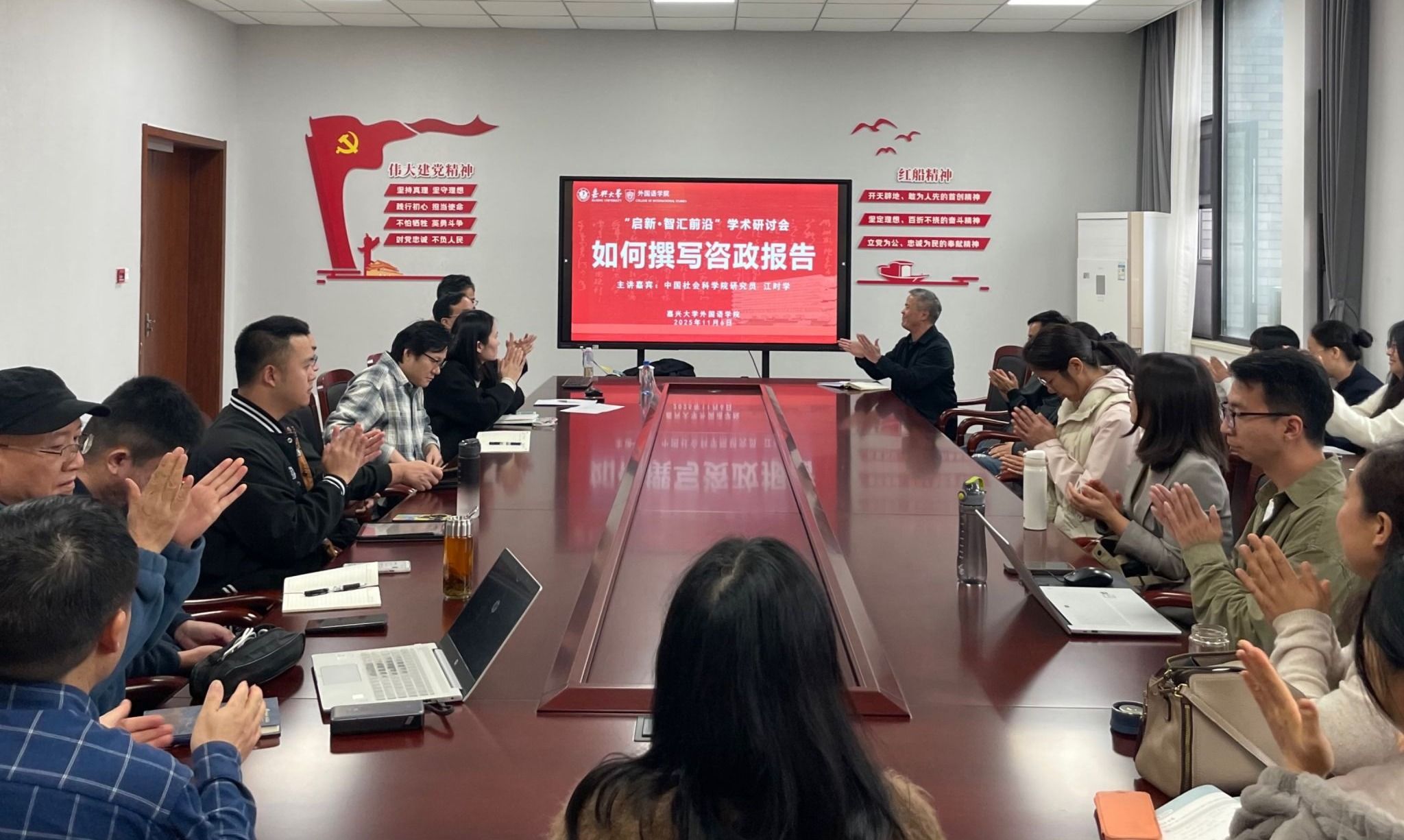江时学教授从咨政报告的选题要点切入,强调选题应立足国家战略需求,具备前瞻性,并避免对政策的简单诠释。在撰写方法方面,他指出报告须开门见山、对策先行。报告题目应精准醒目,内容应聚焦真问题,且重点在于针对问题提出切实可行的对策。江教授还简要介绍了报告的上报流程与规范,并就“AIGC能否撰写咨政报告”“全球南方与南南合作表述区别”等问题与师生互动交流。