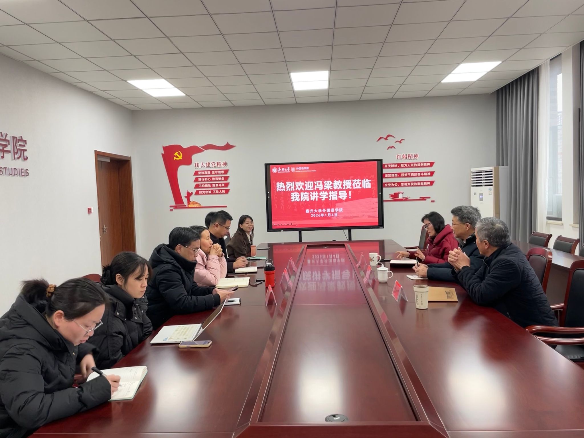 1月4日下午,南京大学中国南海研究协同创新中心副主任、博士生导师冯梁教授应邀来外国语学院讲学指导。学院党政班子成员、各系部主任和教师代表等参加会议。会议由学院院长、嘉兴安澜研究中心主任唐艳芳主持。