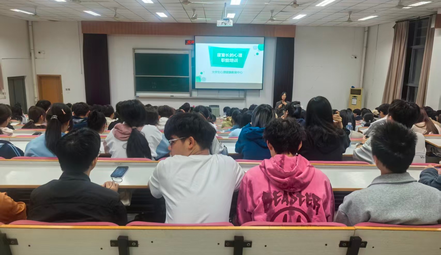 10月23日晚,外国语学院联合医学院、建筑工程学院在悦礼楼报告厅举办寝室长的心理职能培训讲座,学校心理健康教育与资助主管姚春芬老师应邀主讲,全体大一新生寝室长参加培训。