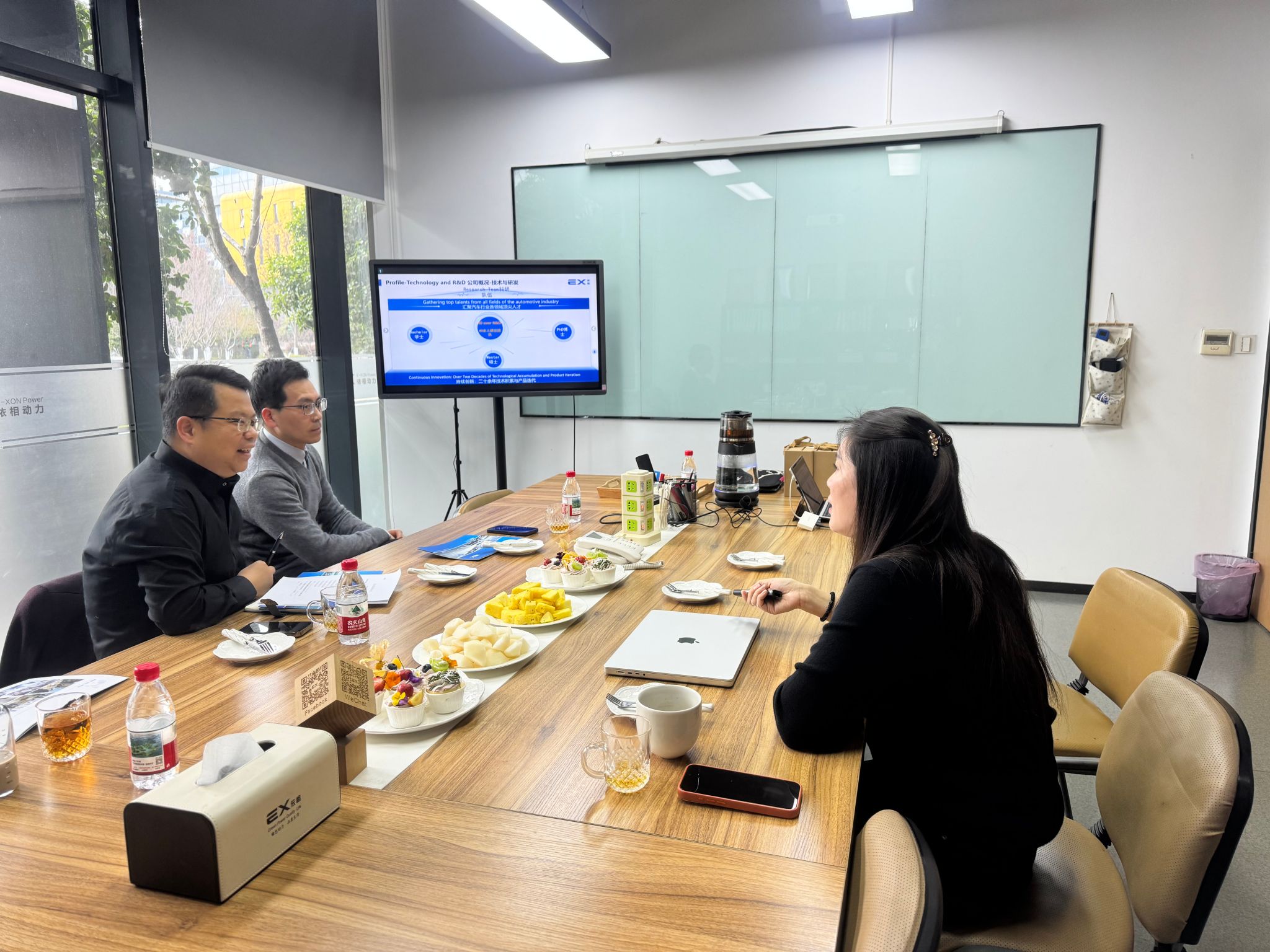 戴晓媛对母校老师的到来表示热烈欢迎,并结合公司发展历程,介绍了企业的经营现状与人才需求。她指出,依相动力致力于成为全球领先的汽车清洁能源动力总成系统提供商与服务商,业务布局覆盖多个国家和地区,在细分领域具备显著竞争力。随着企业国际化进程加快,她表示当前尤其需要兼具外语应用能力、外贸实务技能与跨文化沟通素养的复合型人才,期待与学院在人才培养、实习就业等方面加强合作。