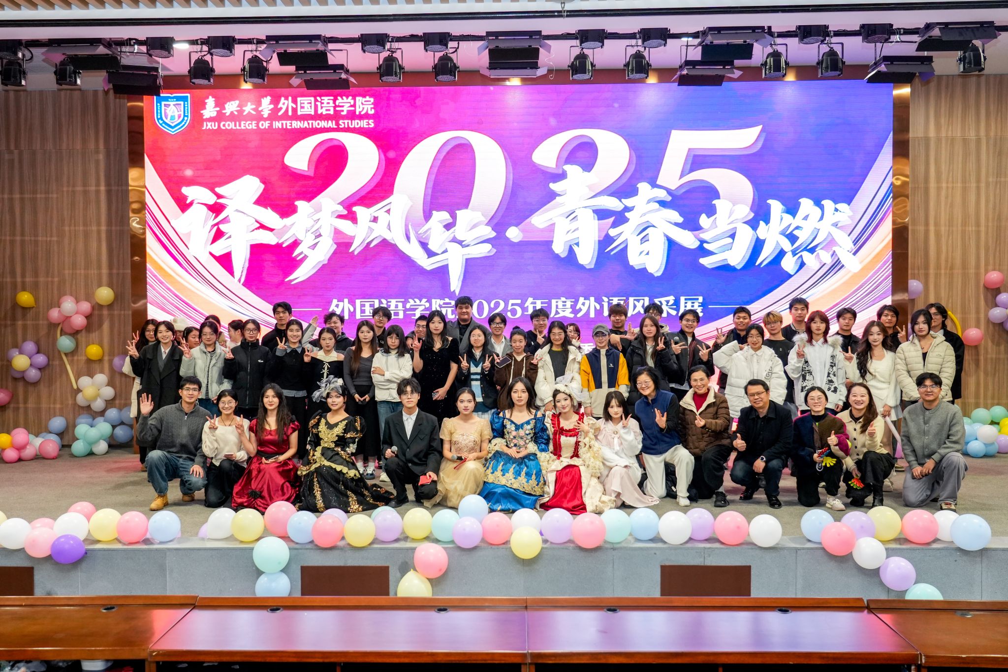 12月21日晚,外国语学院一年一度的特色活动“外语风采展”在图书馆报告厅举行。今年活动以“译梦风华·青春当‘燃’”为主题,学院分管学生工作负责人、近300名师生齐聚一堂,共同见证了一场融语言艺术、文化展示与青春创意于一体的视听盛宴。