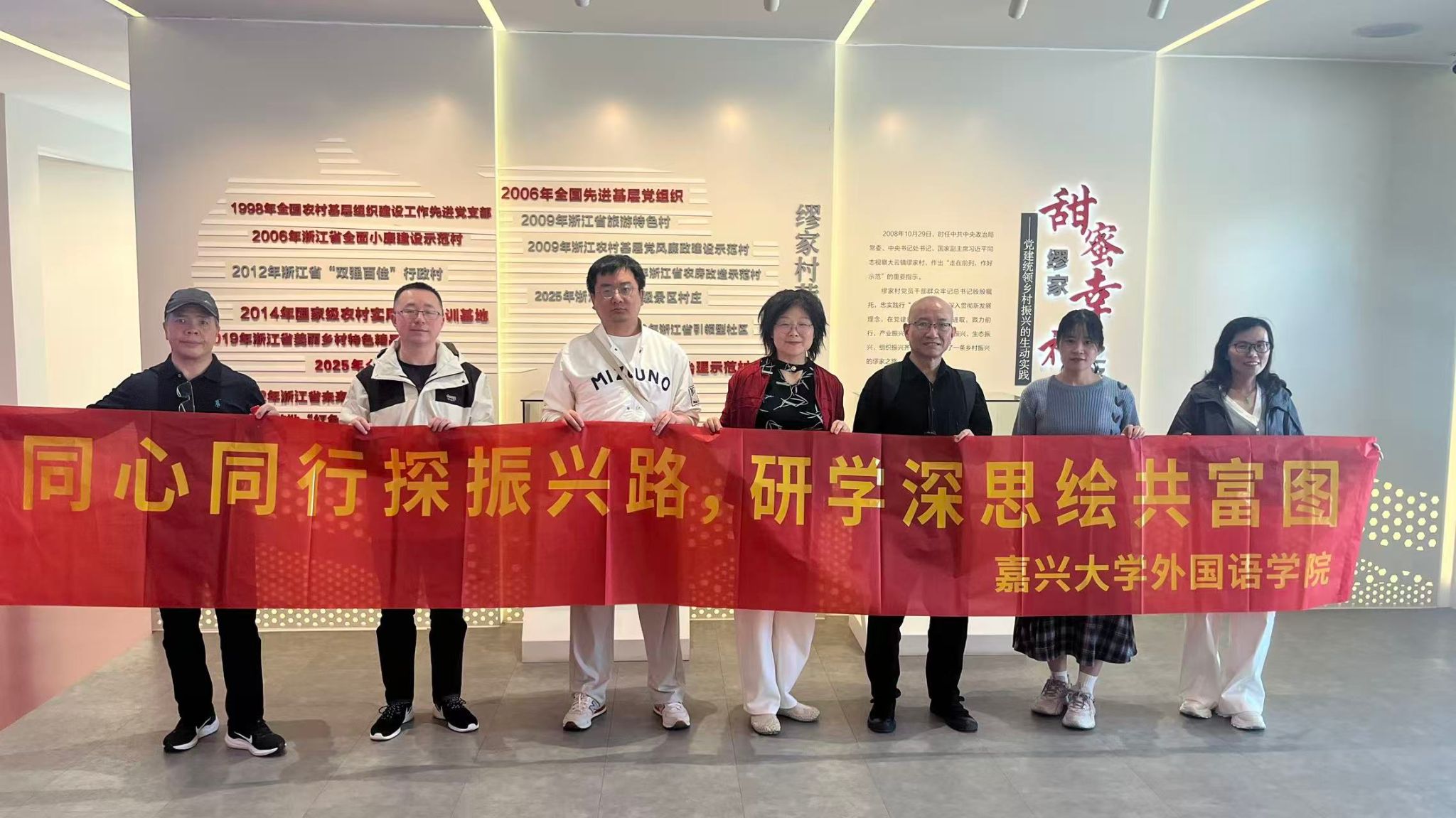 4月26日,外国语学院党委组织党外教师代表赴全国先进基层党组织和“千万工程”的生动实践地——嘉善县大云镇缪家村,开展“同心同行探振兴路 研学深思绘共富图”主题调研活动,进一步凝聚党外知识分子服务地方经济社会发展的共识与力量。