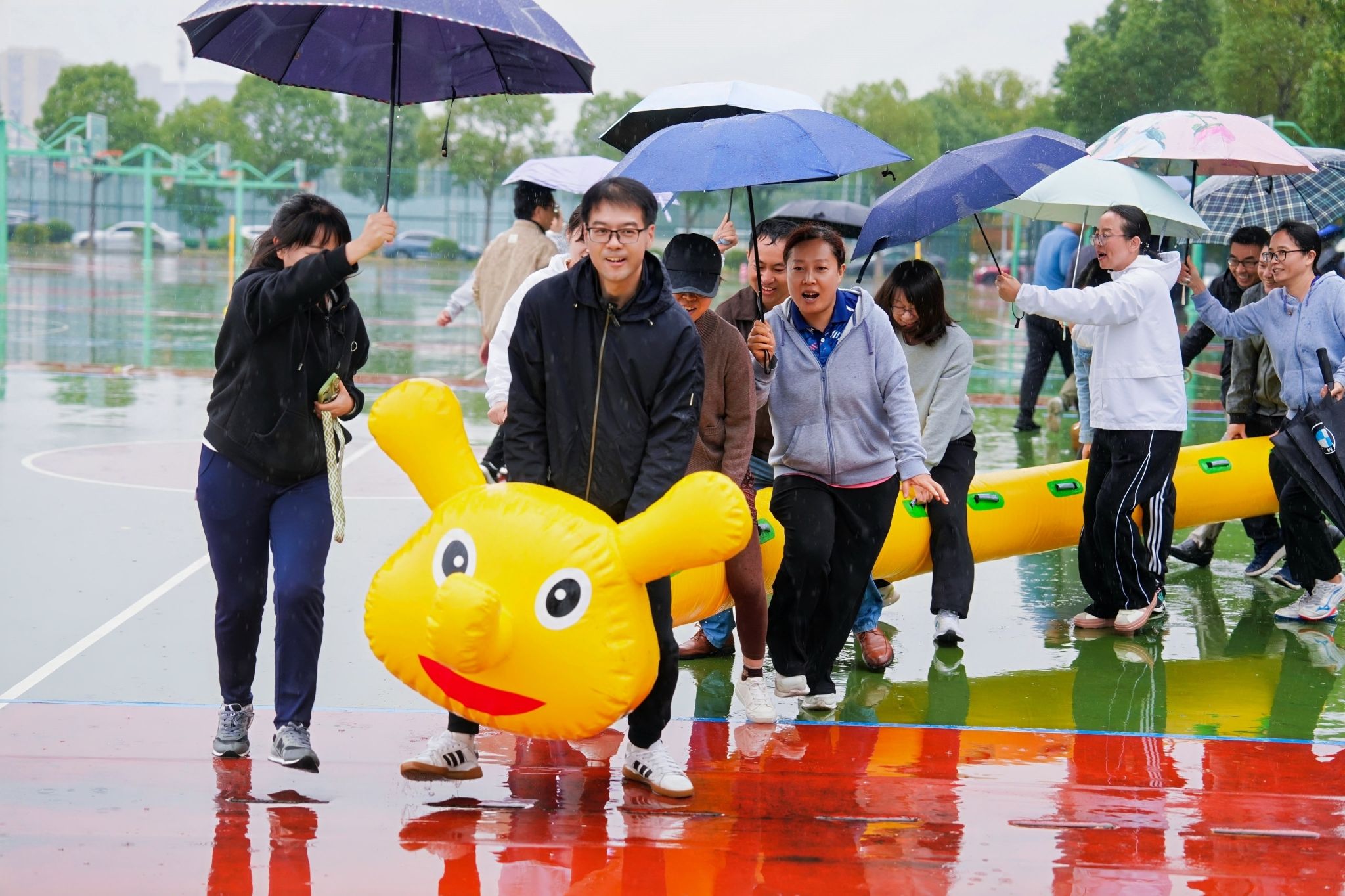 10月30日,嘉兴大学教职工趣味运动会在梁林二期田径场启幕。尽管风雨交加、寒意袭人,但丝毫未减老师们的参赛热情,阵阵欢呼与加油声穿透雨幕,回荡在赛场之上。