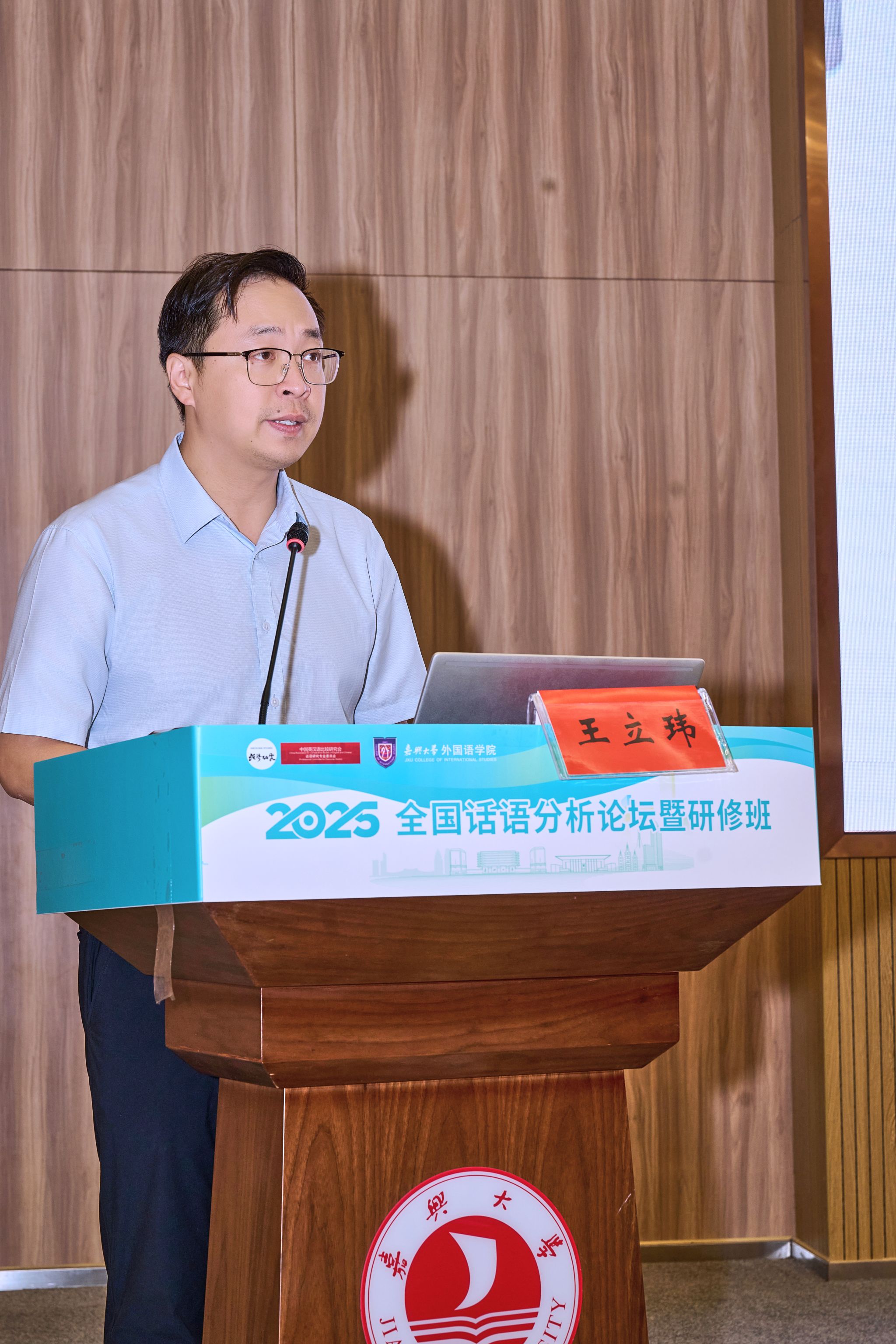 10月17—19日,2025年全国话语分析论坛暨研修班在嘉兴大学举办。论坛由中国英汉语比较研究会话语研究专业委员会主办、嘉兴大学外国语学院承办。嘉兴大学党委委员、副校长王立玮致欢迎辞,中国英汉语比较研究会话语研究专业委员会会长辛斌致开幕辞,嘉兴大学外国语学院院长唐艳芳主持开幕式。来自全国15个省市(自治区)以及马来西亚的近100名师生学者代表参加。